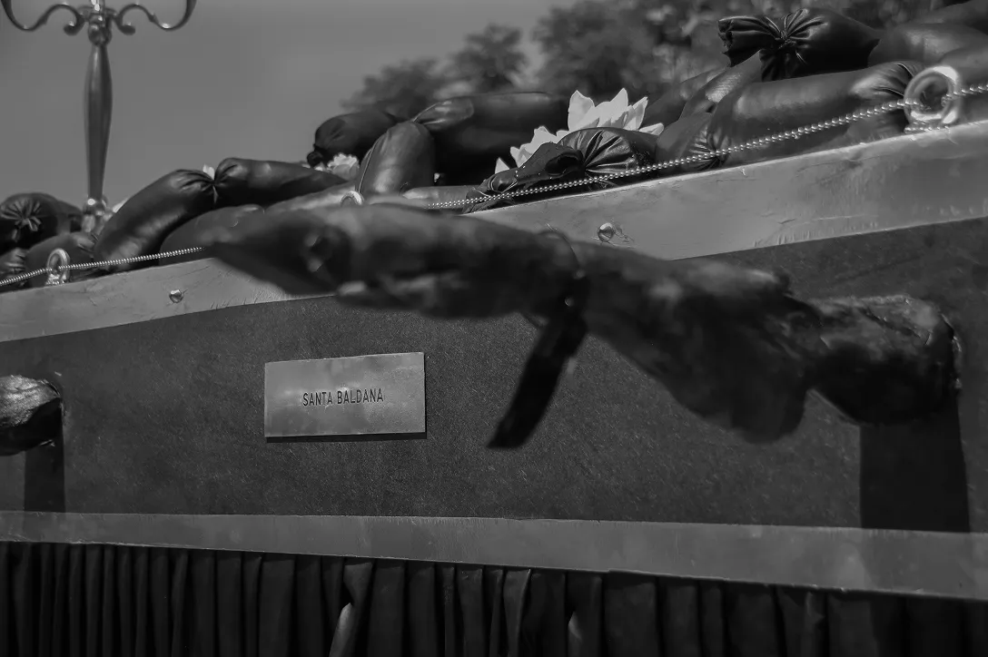 Santa Baldana, en este sentido, no sólo reformula el símbolo: lo devuelve a la esfera pública, lo disputa, lo encarna. La obra no representa una fe; la activa. No replica un rito; lo tensiona desde su materialidad. En lugar de huir del conflicto, lo expone como núcleo vivo del imaginario compartido.